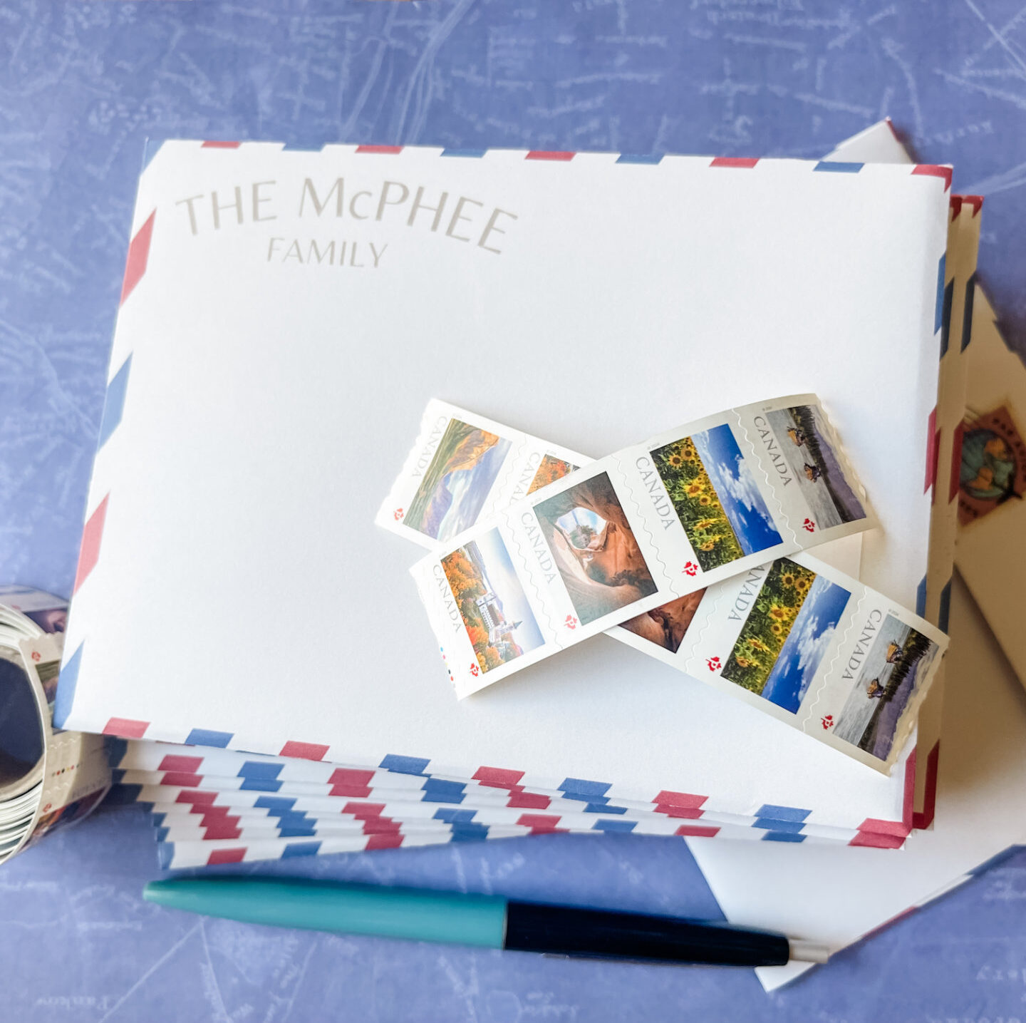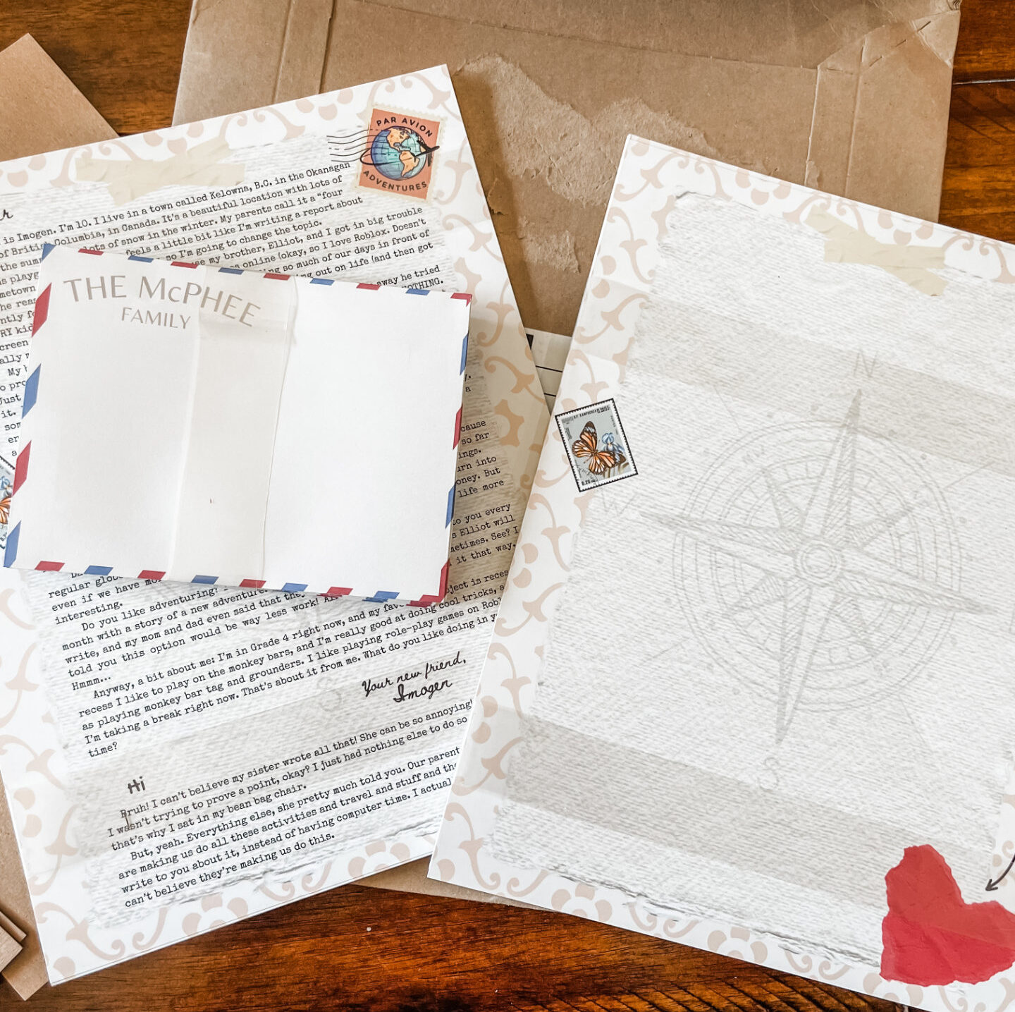 Receive 12 snail mail letters from the fictional McPhee family with tales of their travel adventures, colourfully illustrated on 8×11″ paper, with a small, bonus surprise included in each envelope.